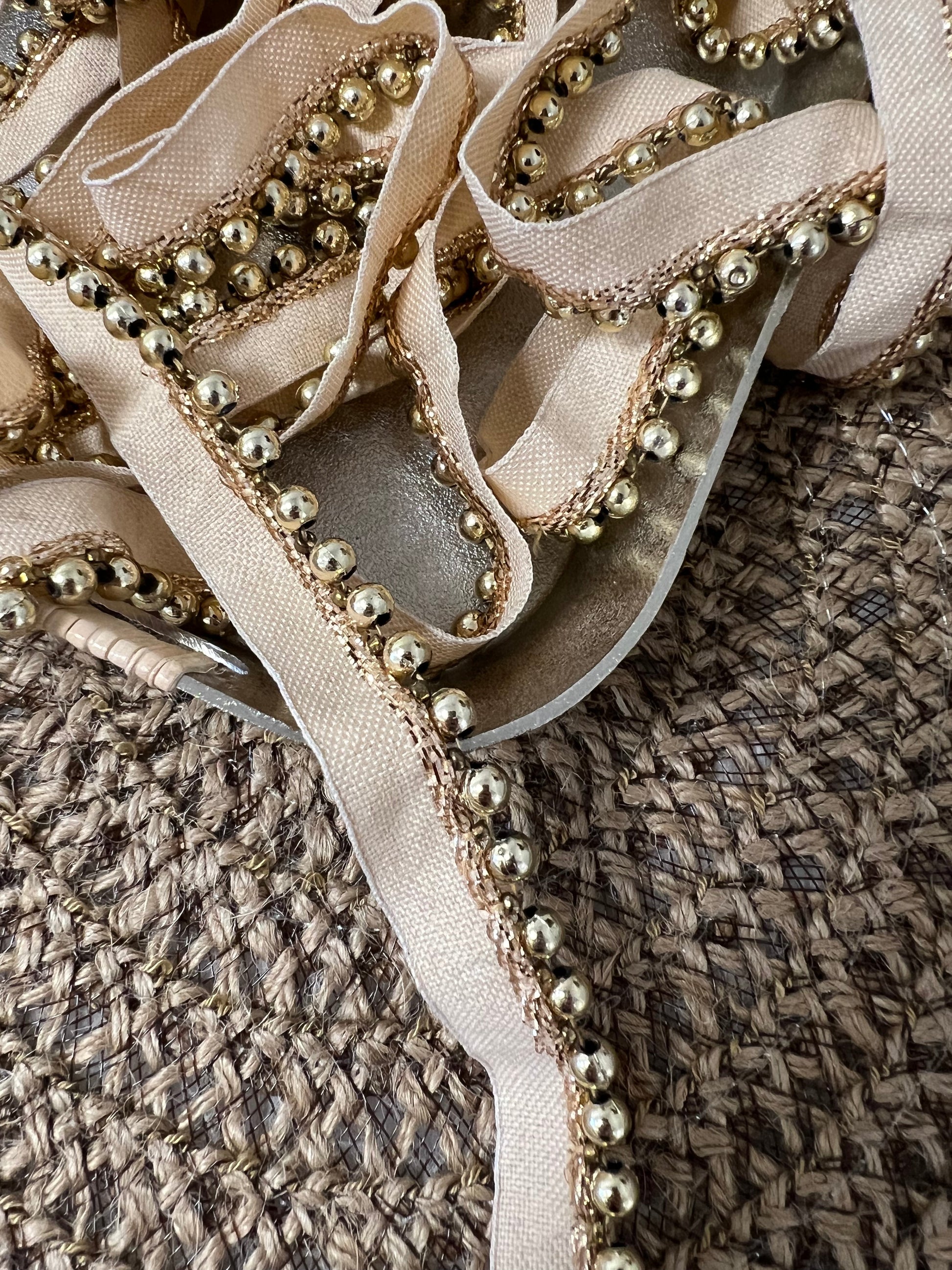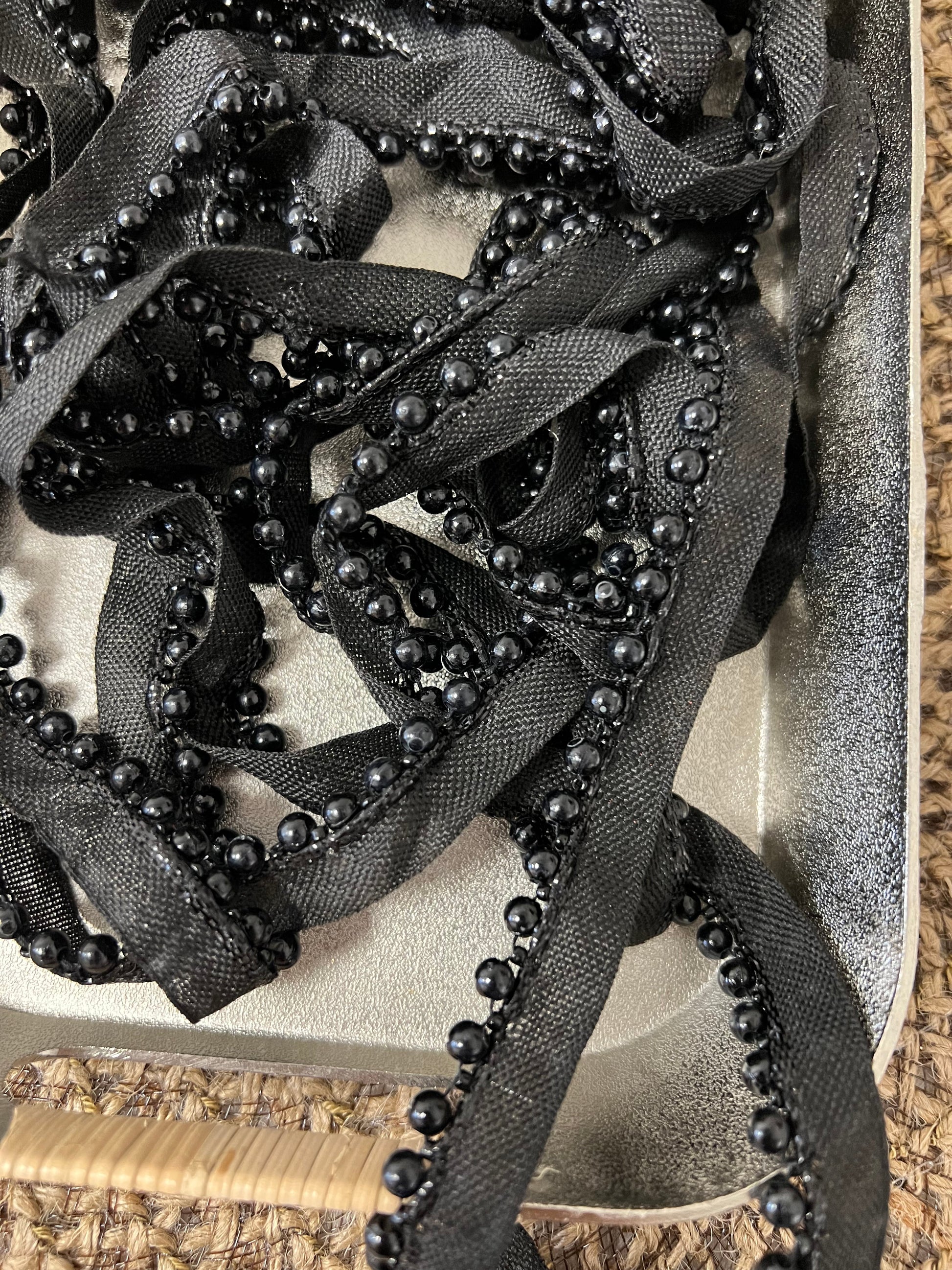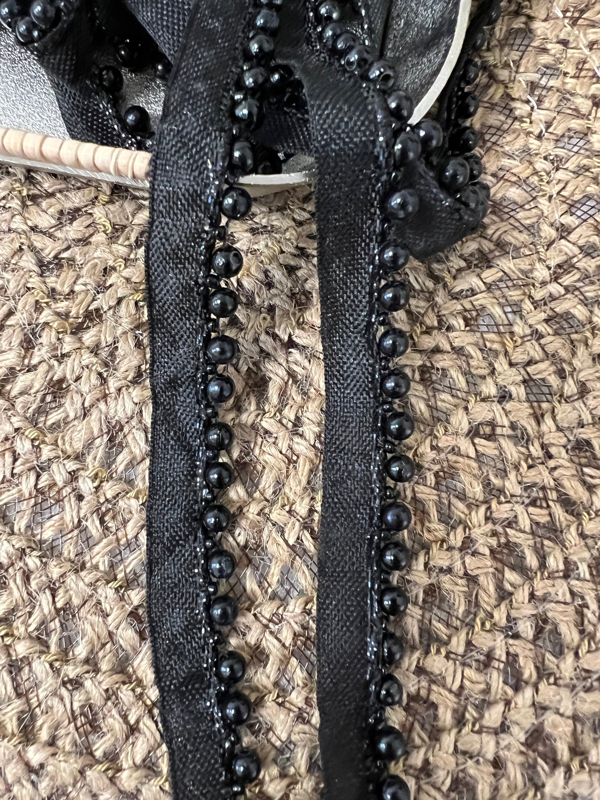Galon à perles. Largeur 1,5 cm. Différents coloris. Quantité très limitée.