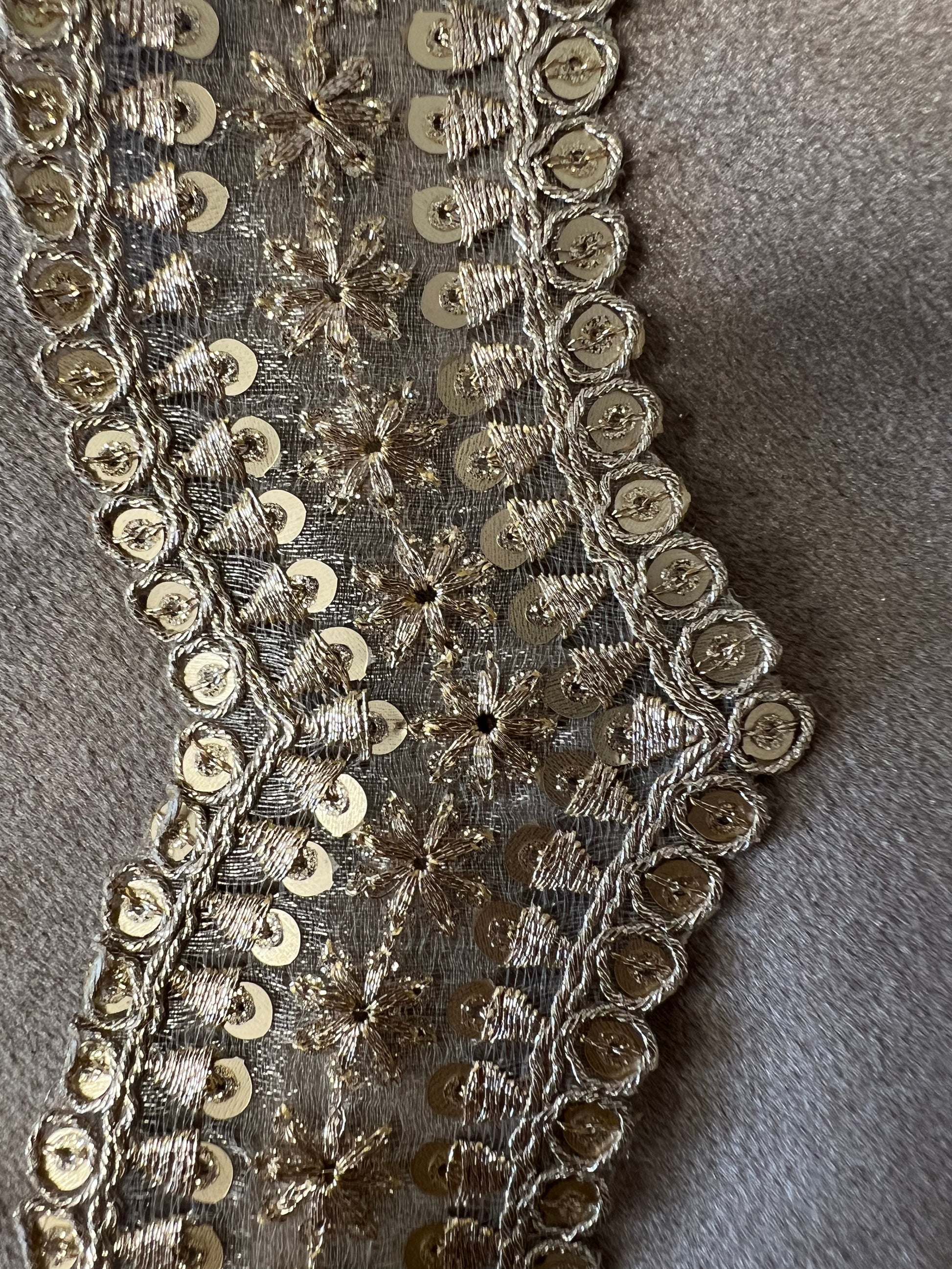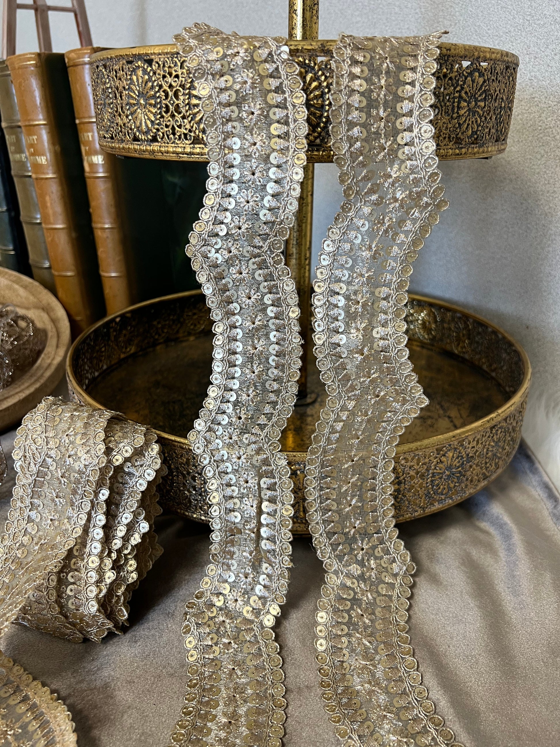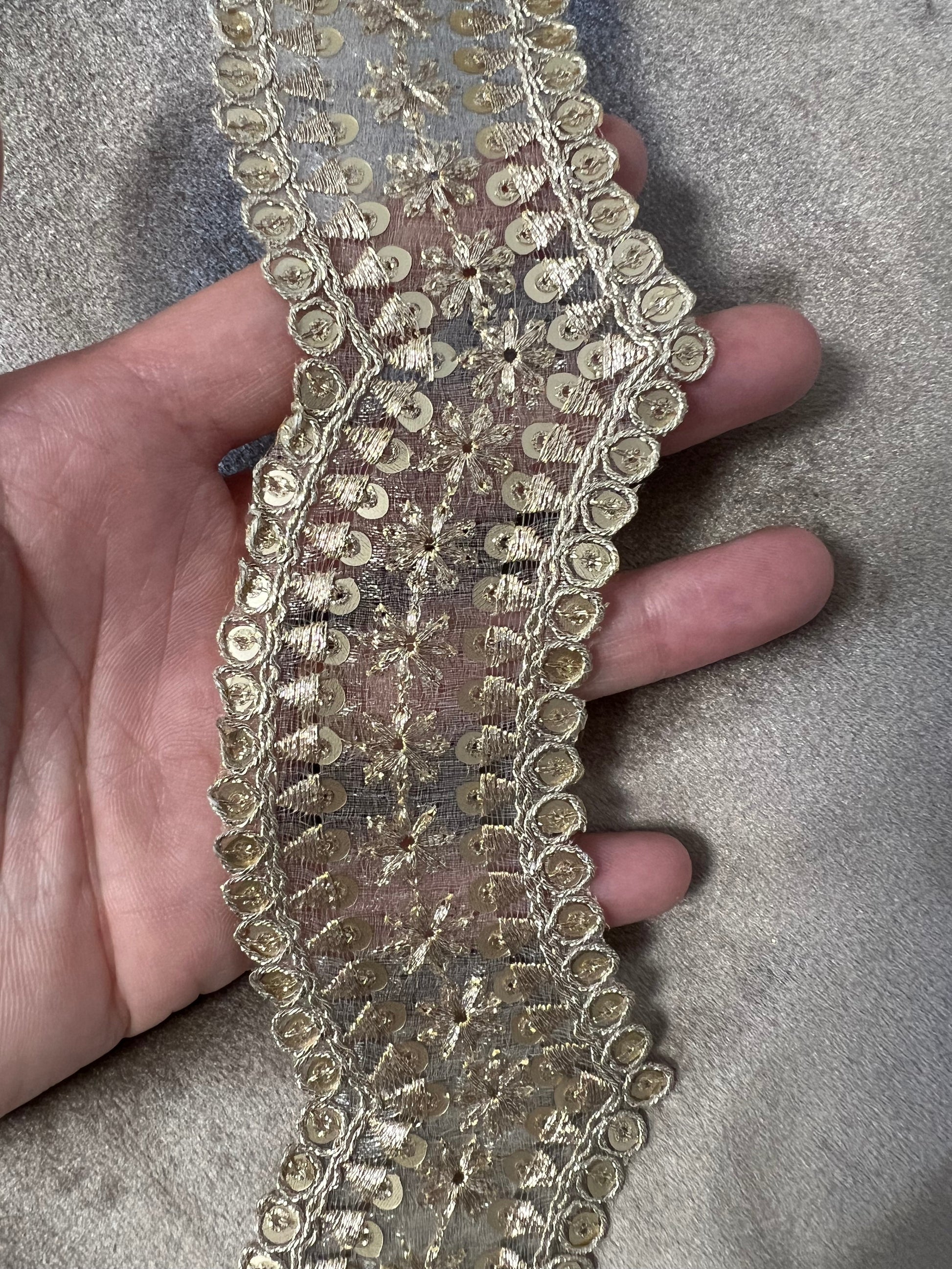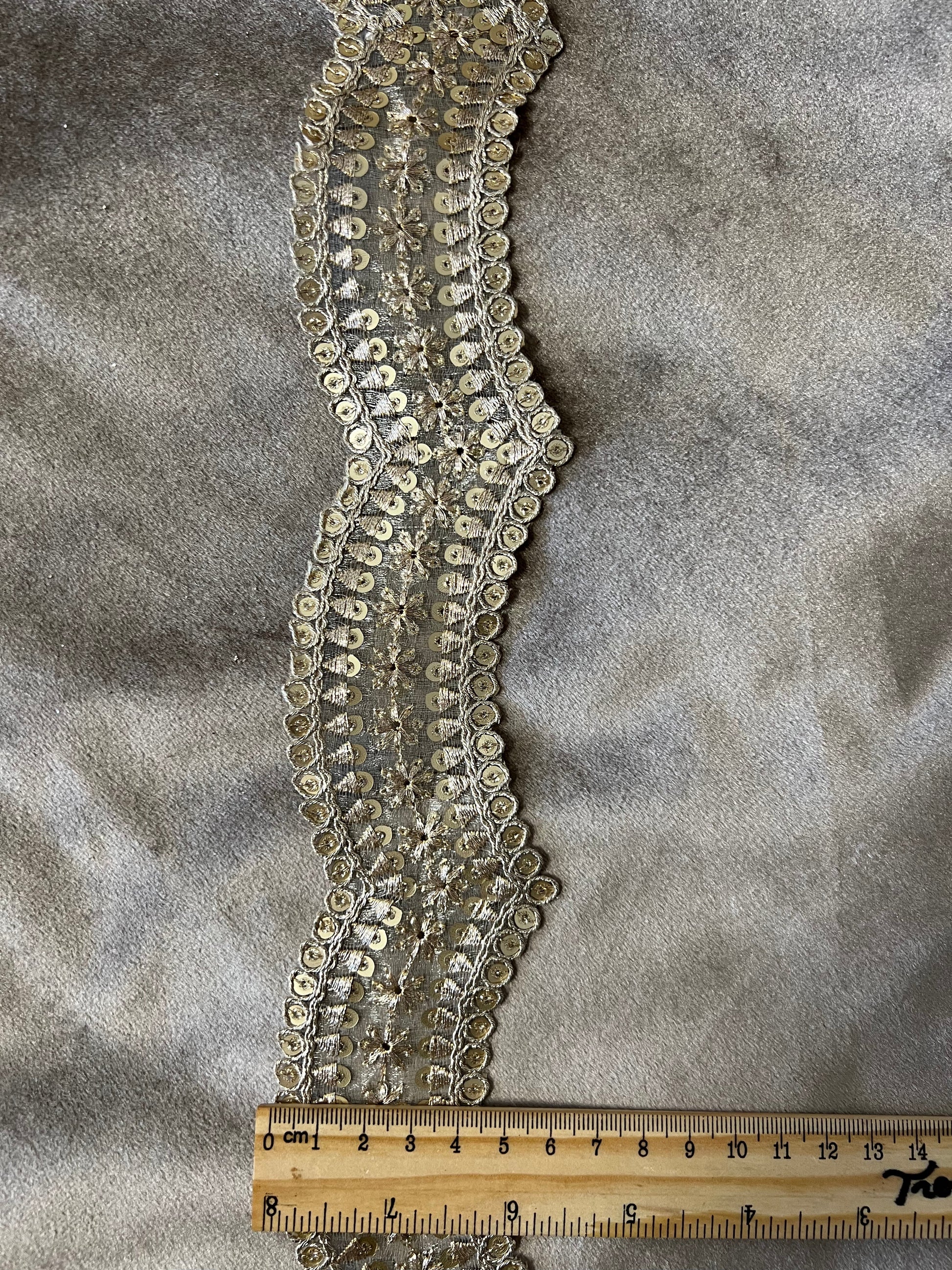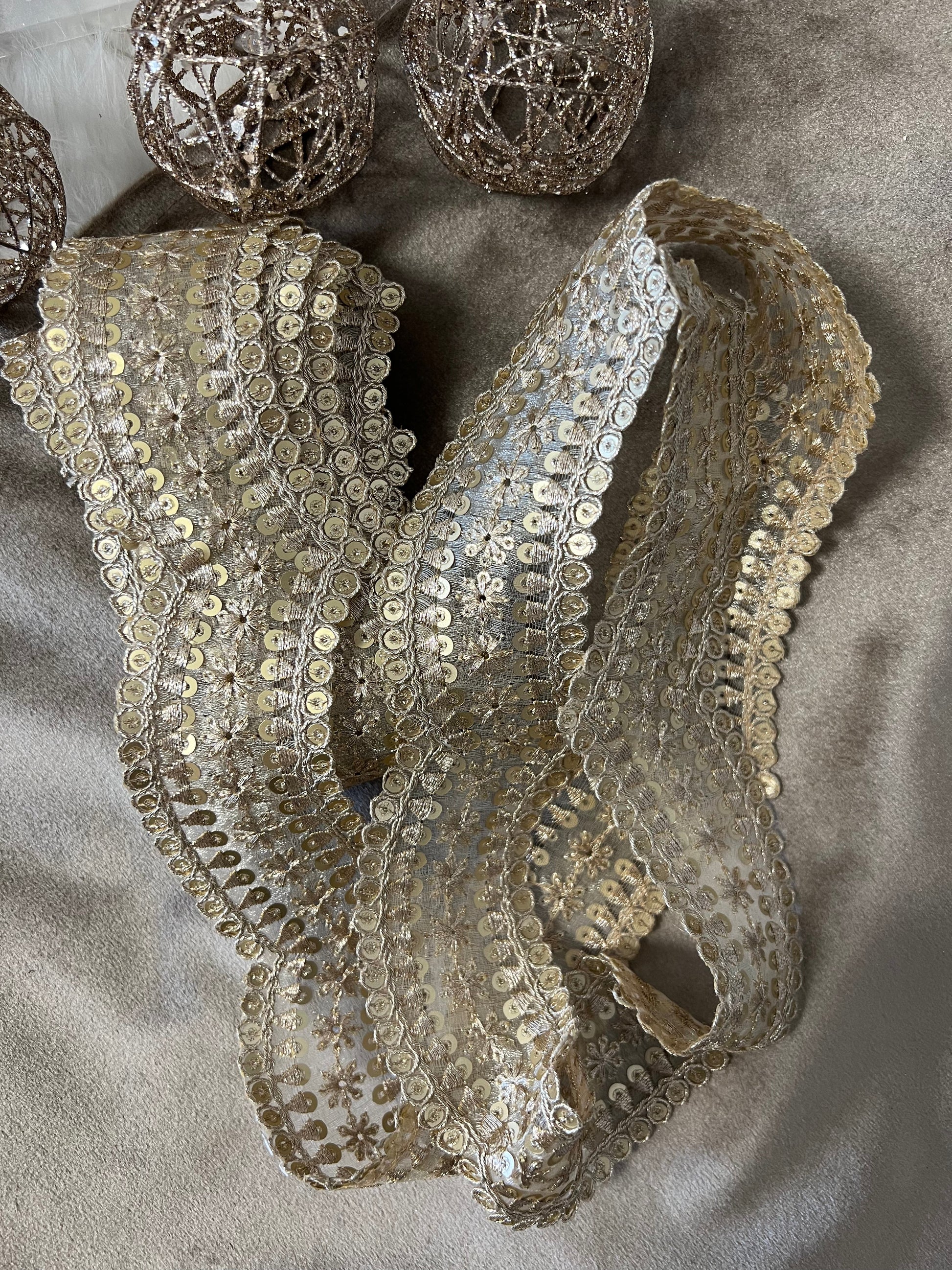 Galon à vagues doré avec mini perle blanches. Largeur 5 cm. Quantité très limitée