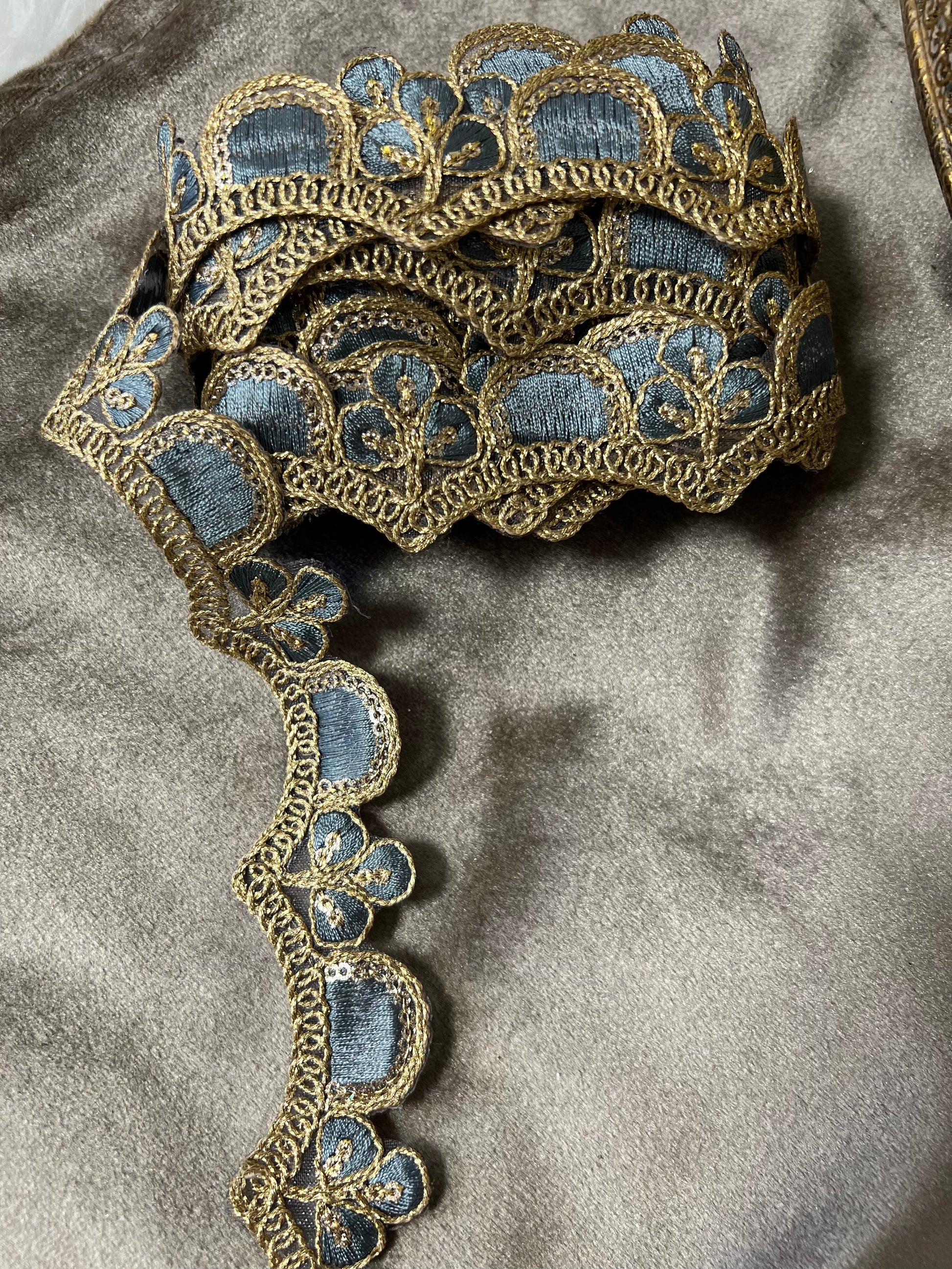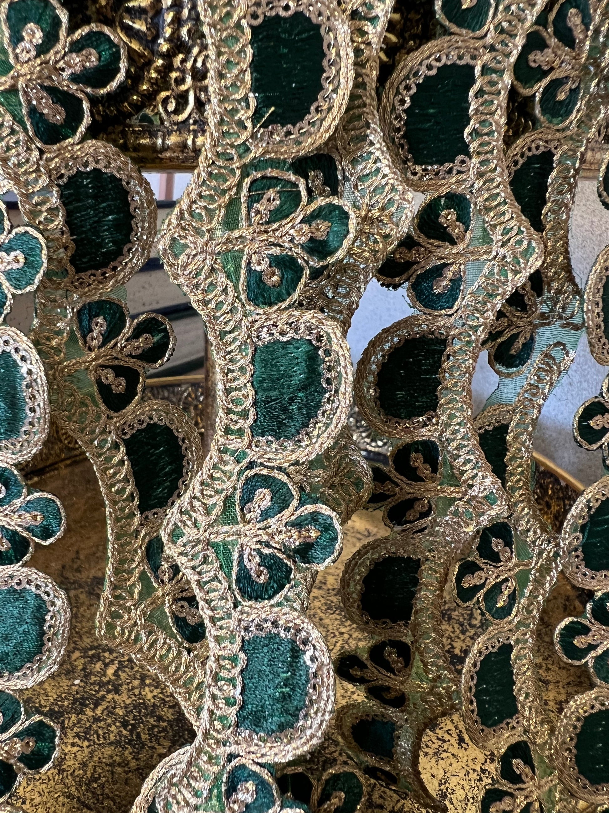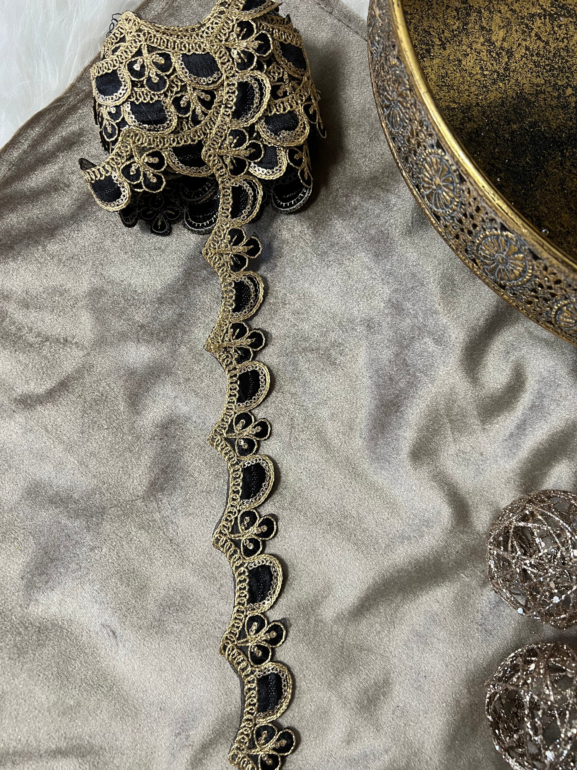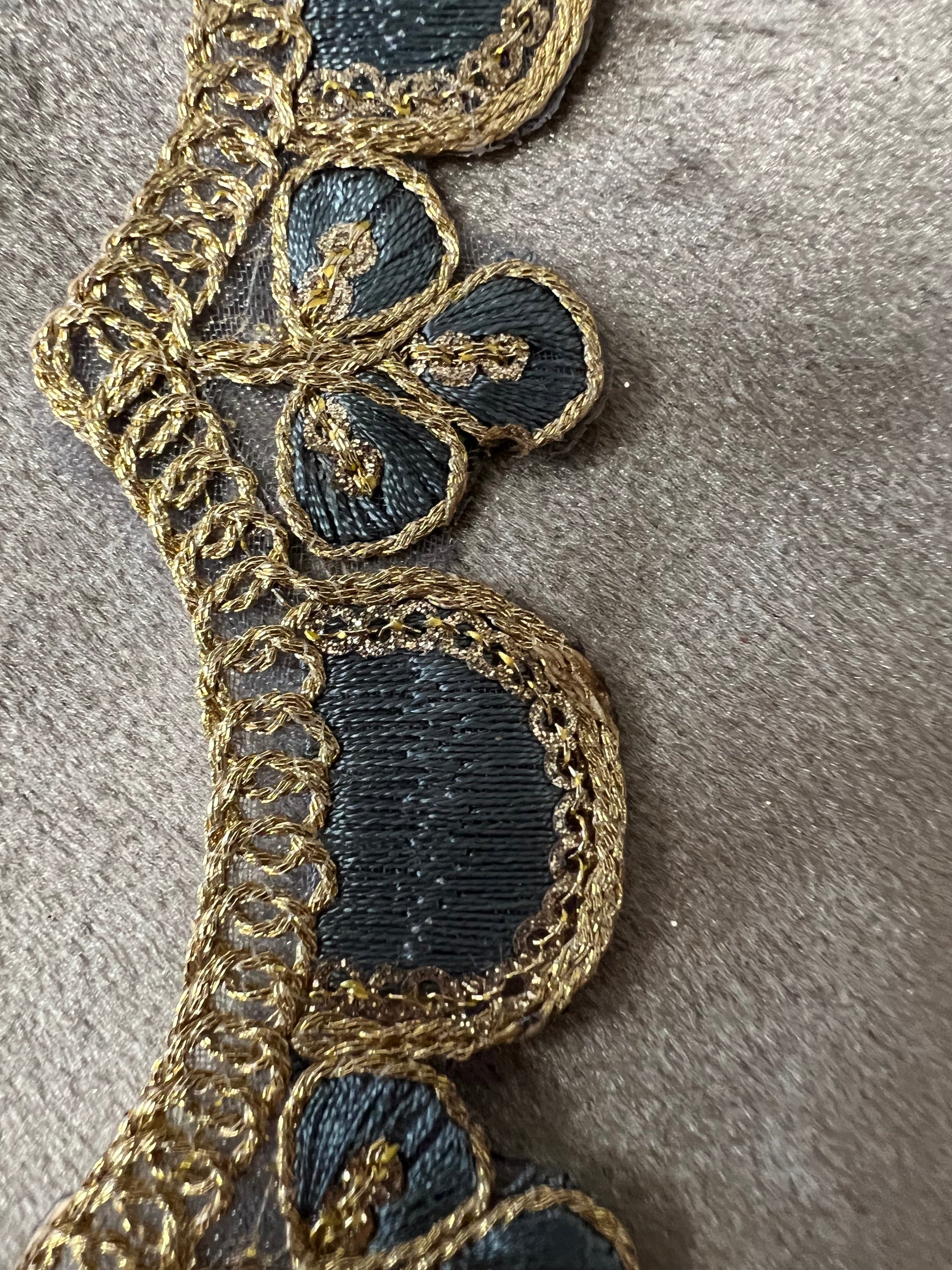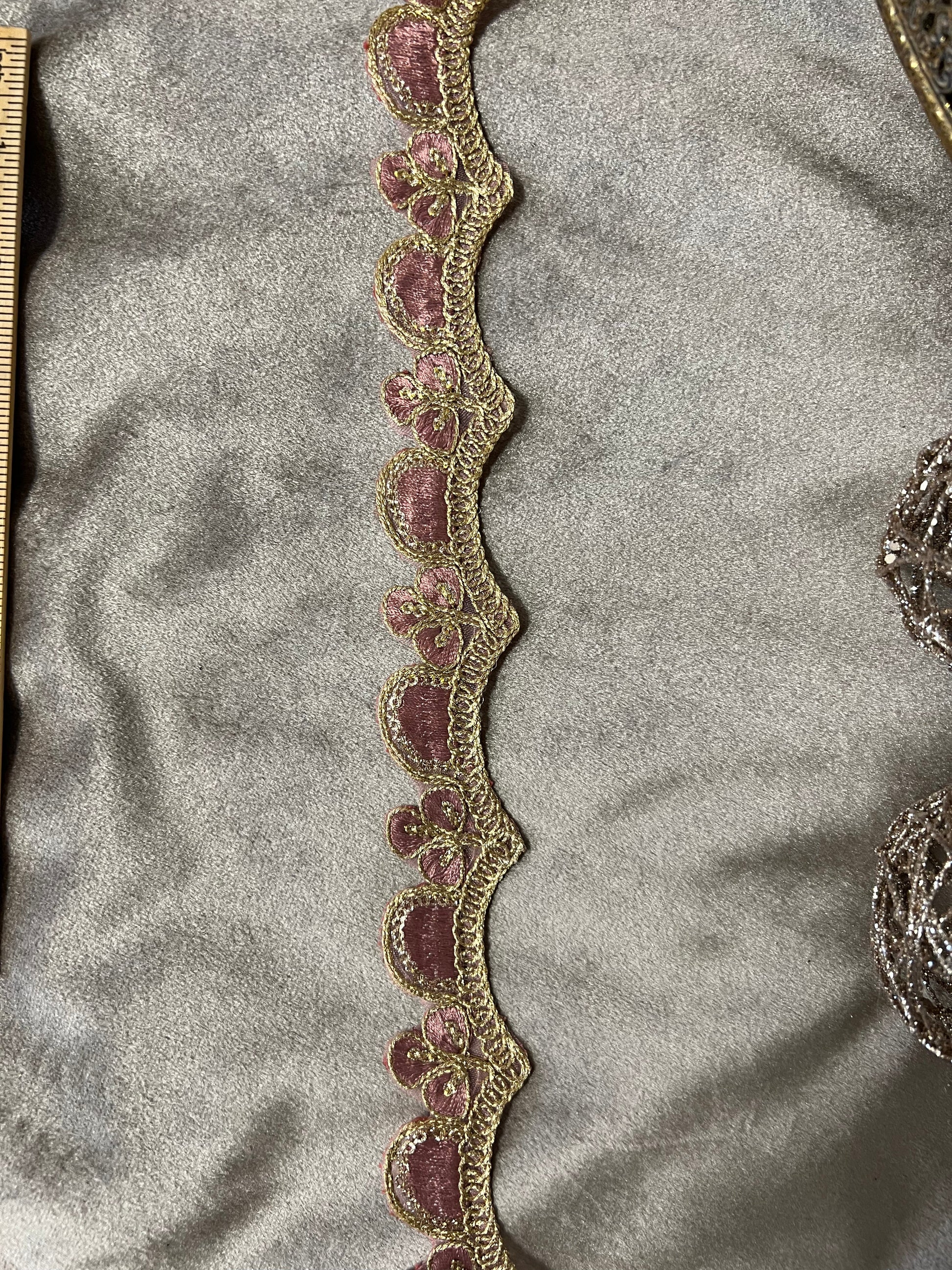 Galon arabesque. Largeur 3 cm. Différents coloris. Quantité très limitée.