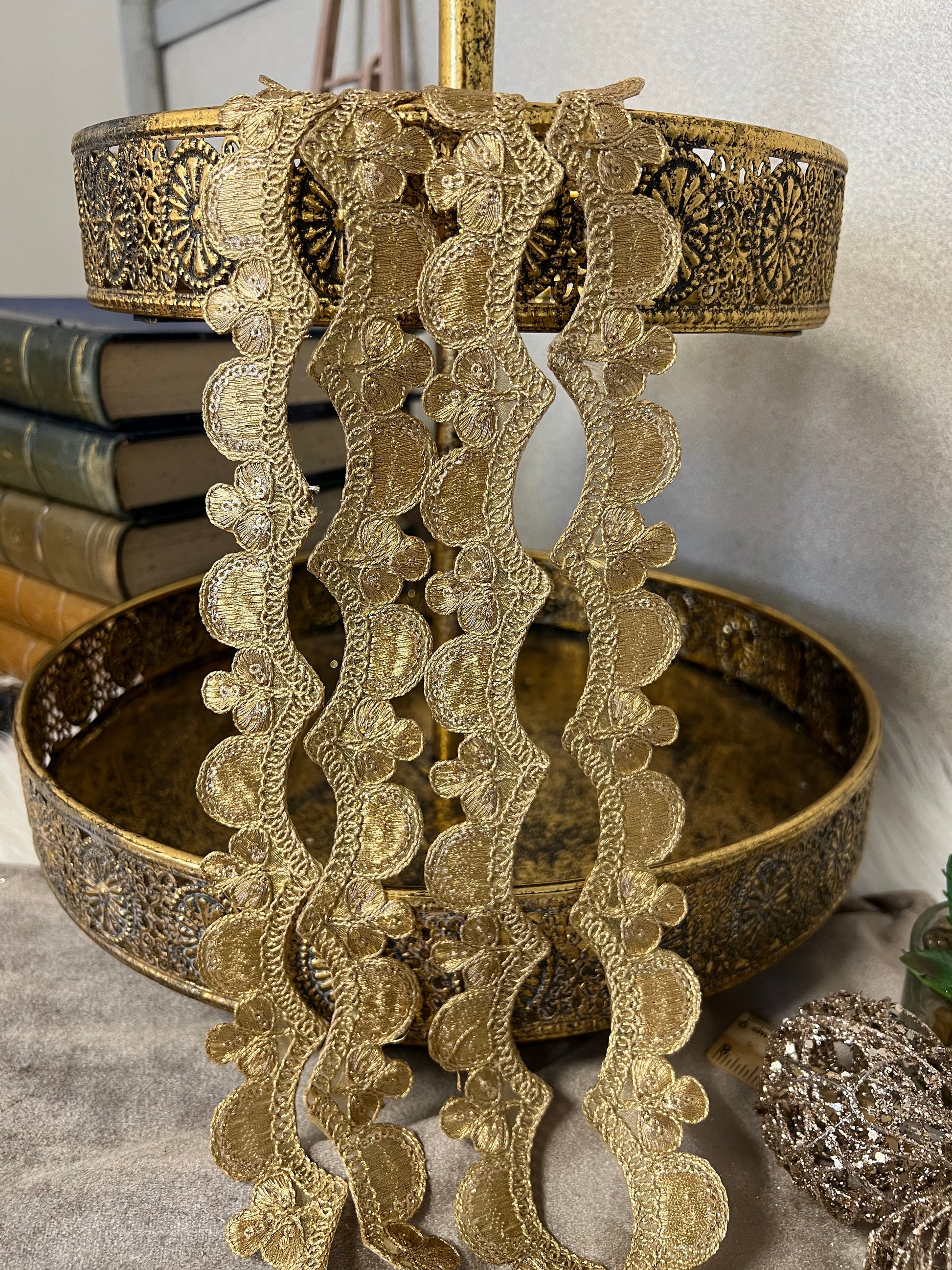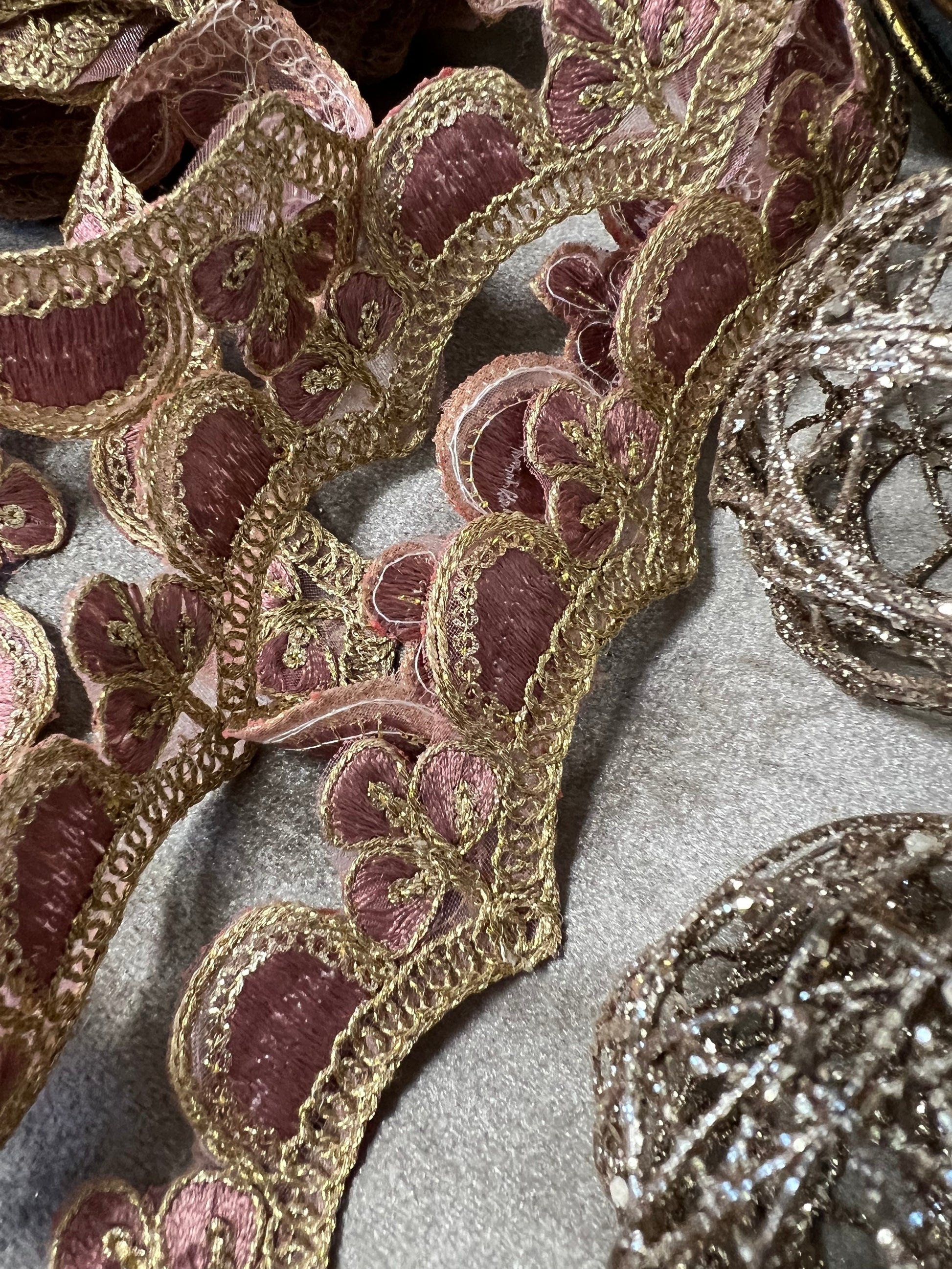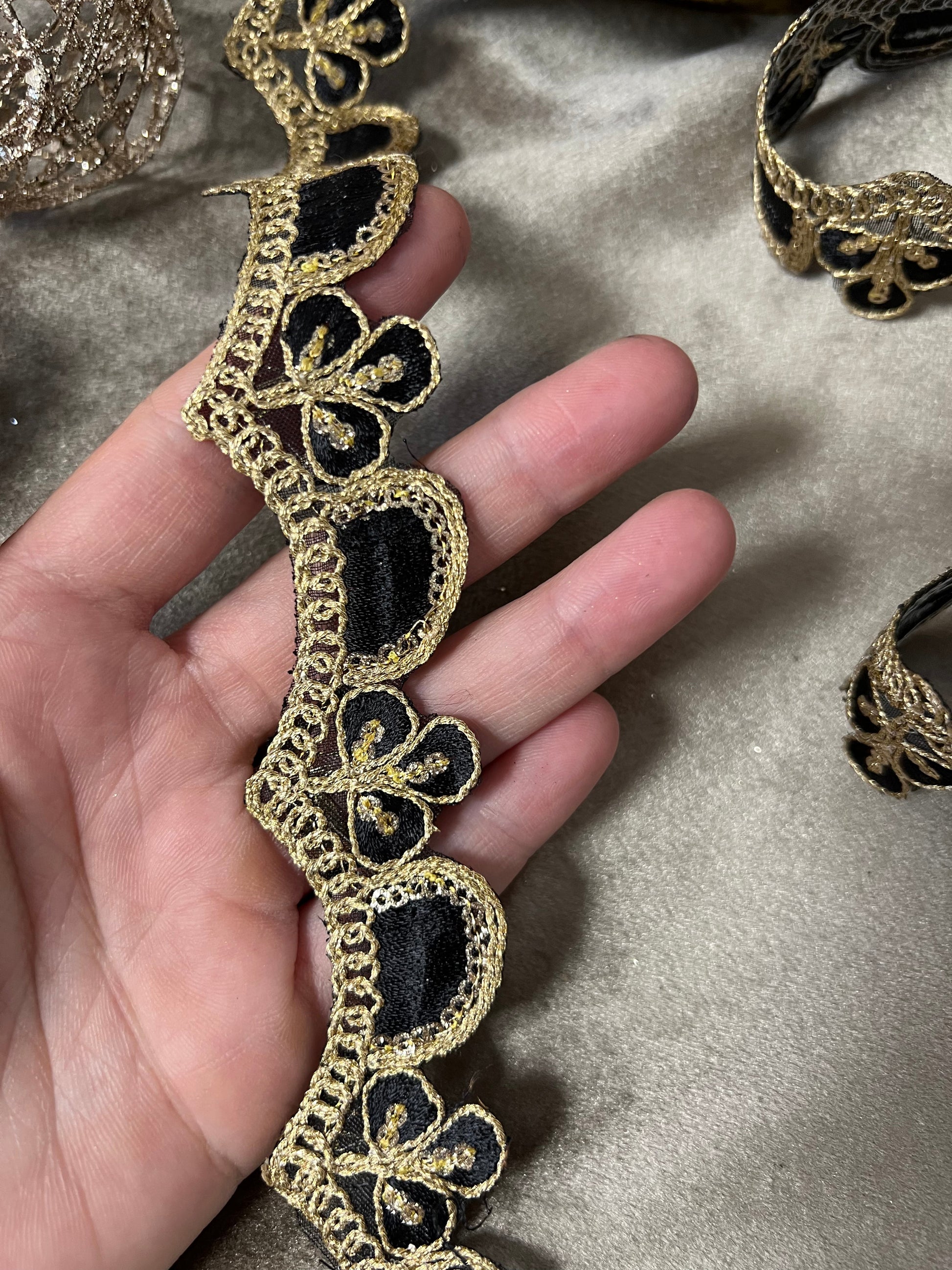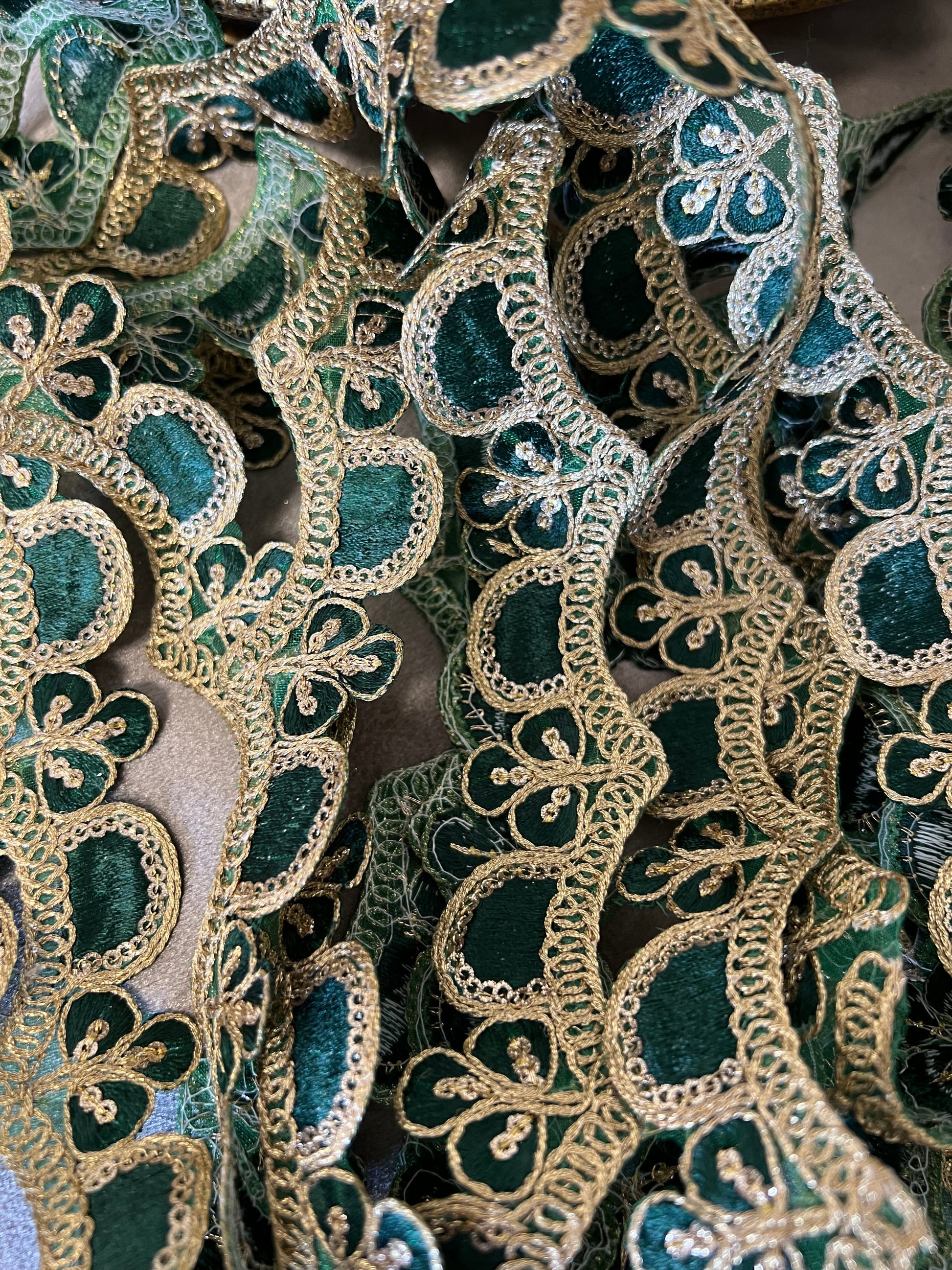 Galon arabesque. Largeur 3 cm. Différents coloris. Quantité très limitée.