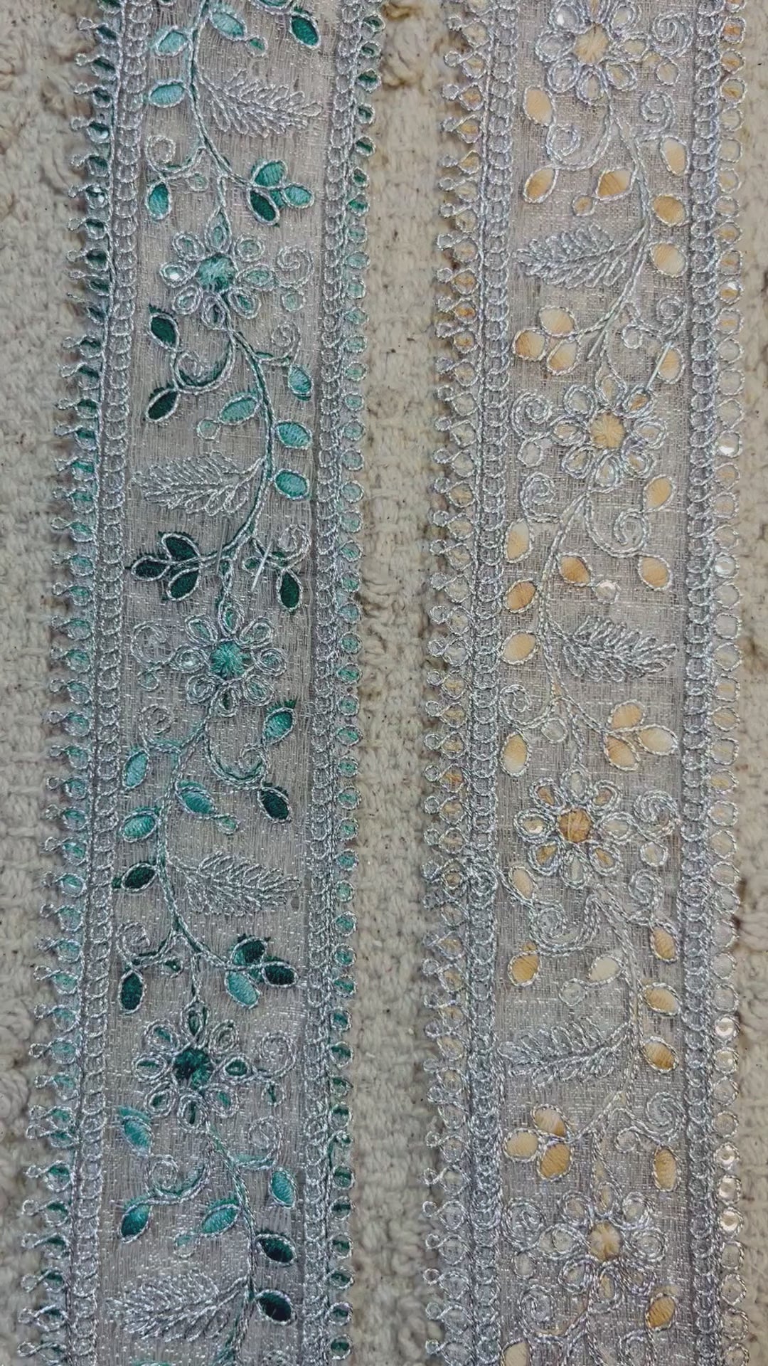 Galon aux fils d'argent et broderie turquoise