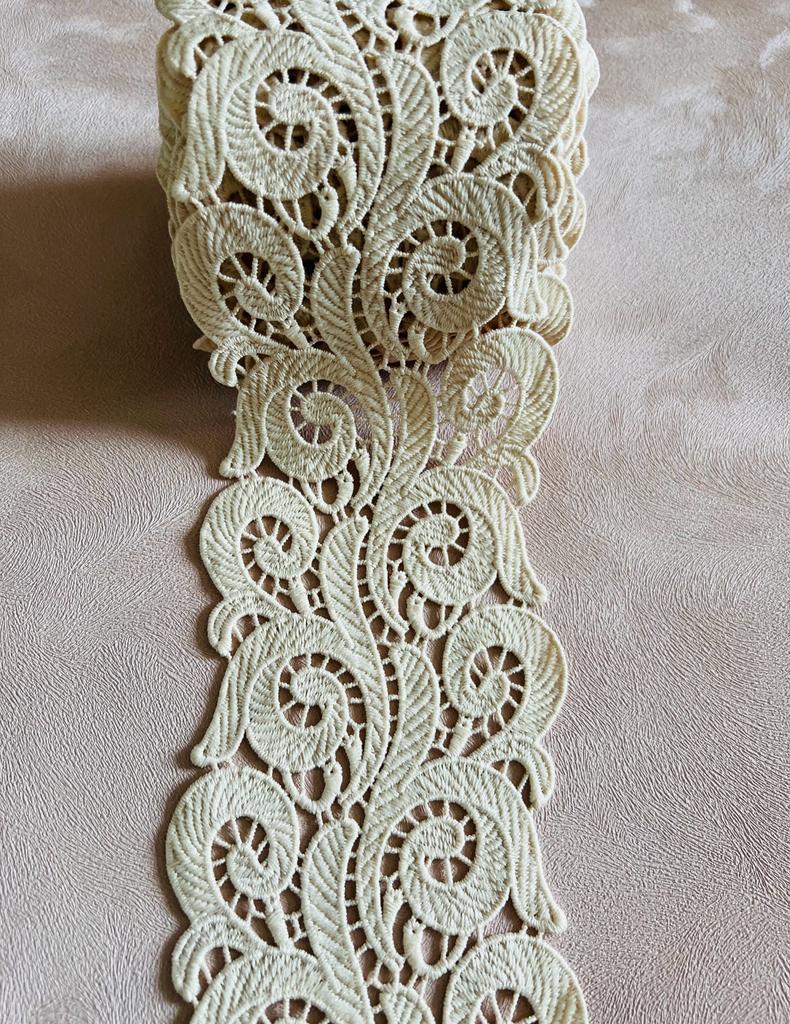 Galon beige écru épais en dentelle large. Largeur 9 cm. Quantité très limitée.