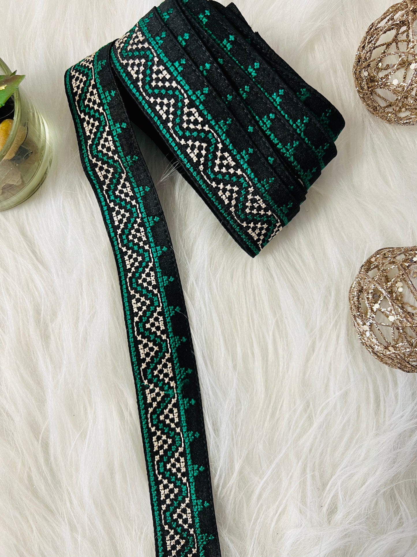 Galon fin brodé en points de croix zigzag