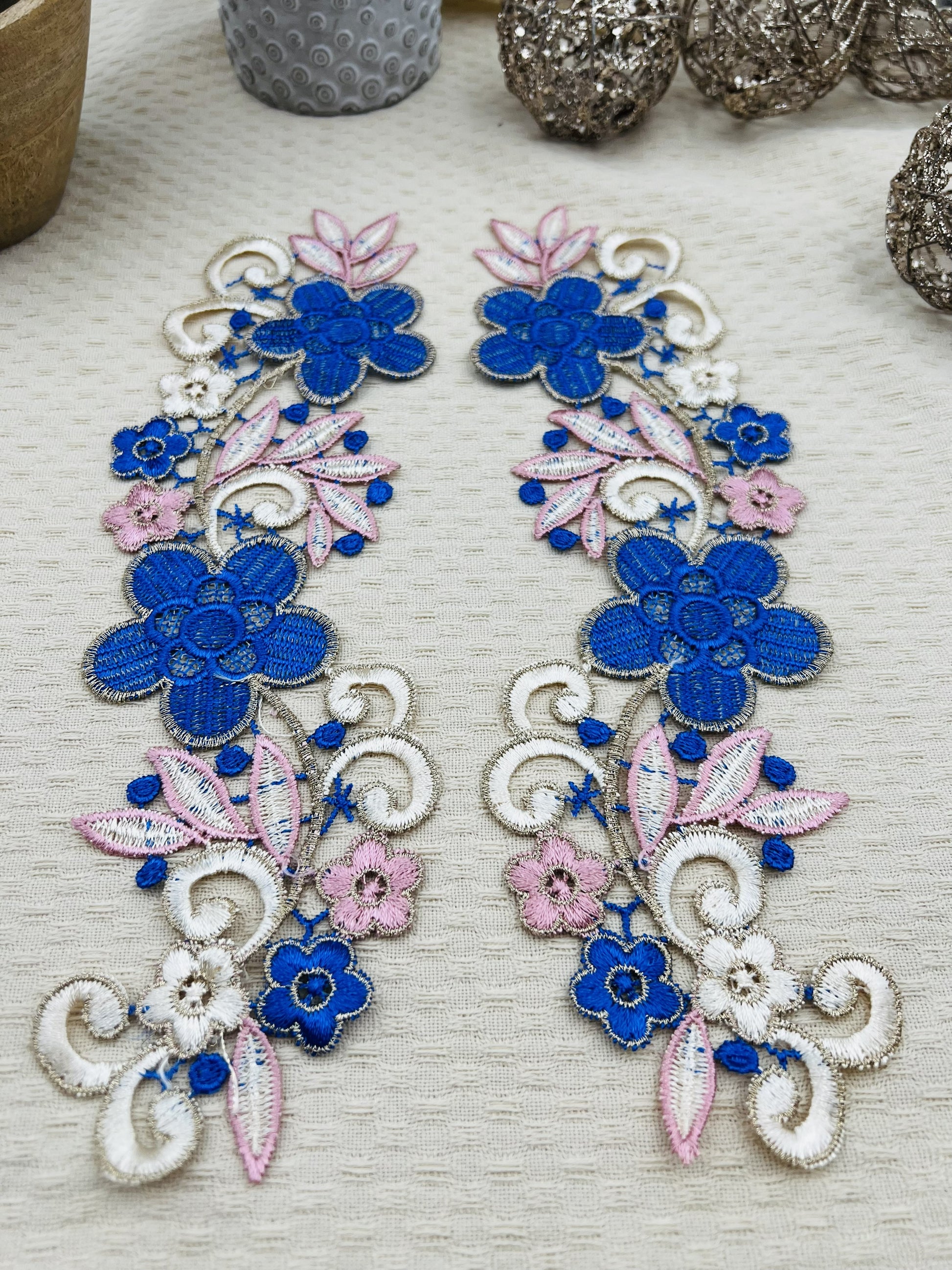 Guipure intemporelle fleurs bleu saphir rose 2 pièces