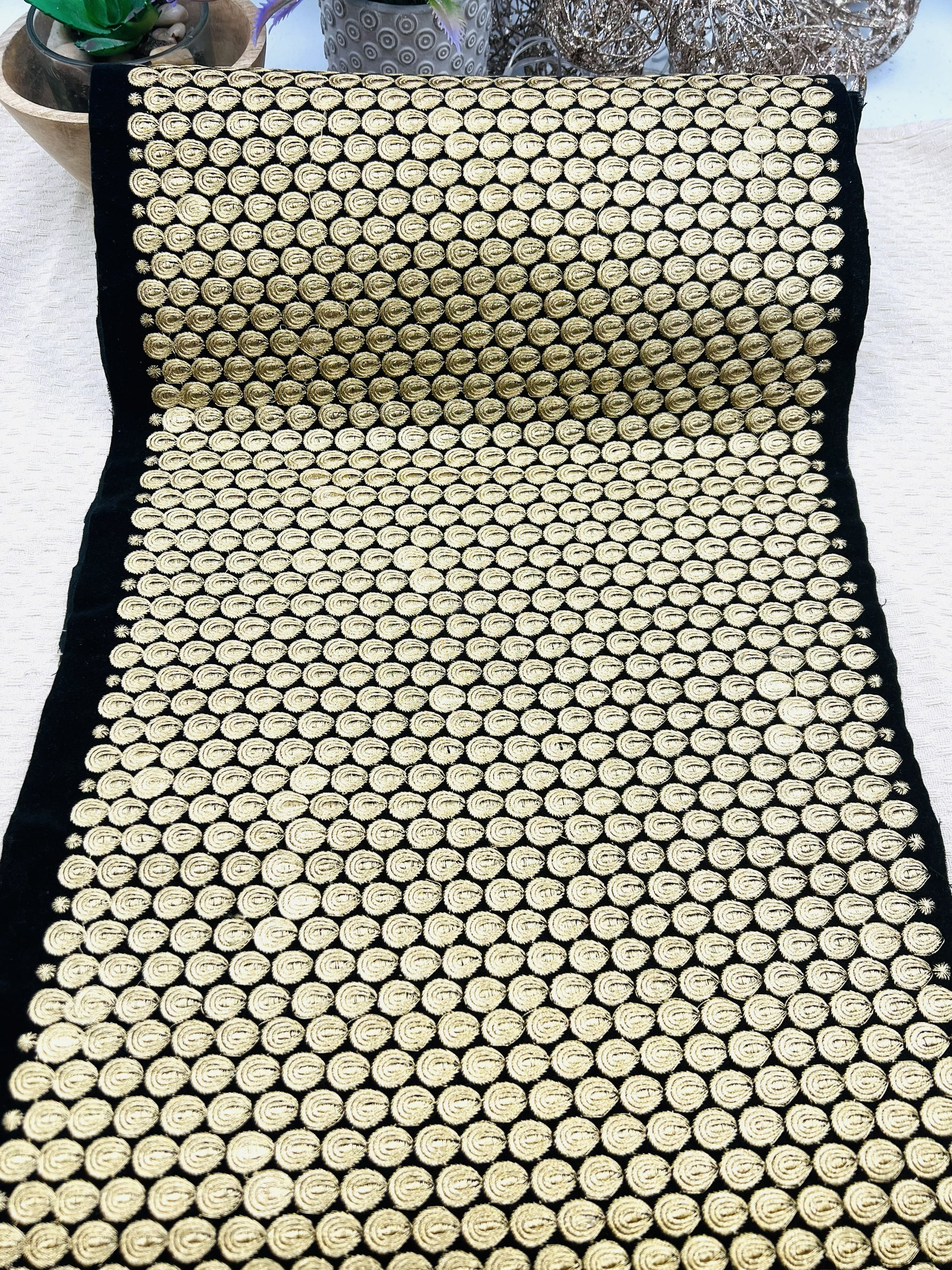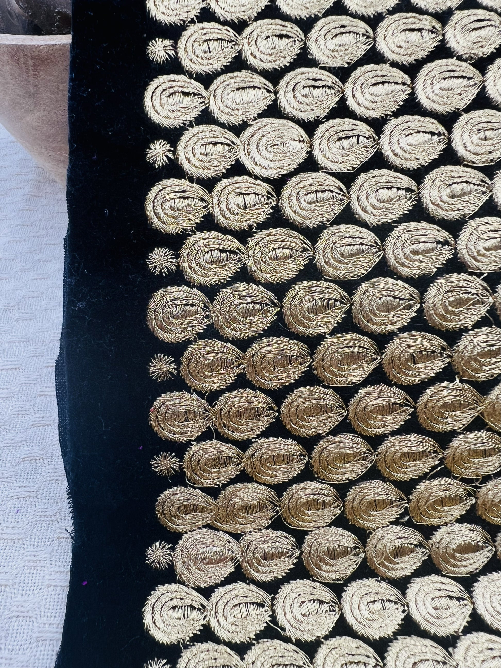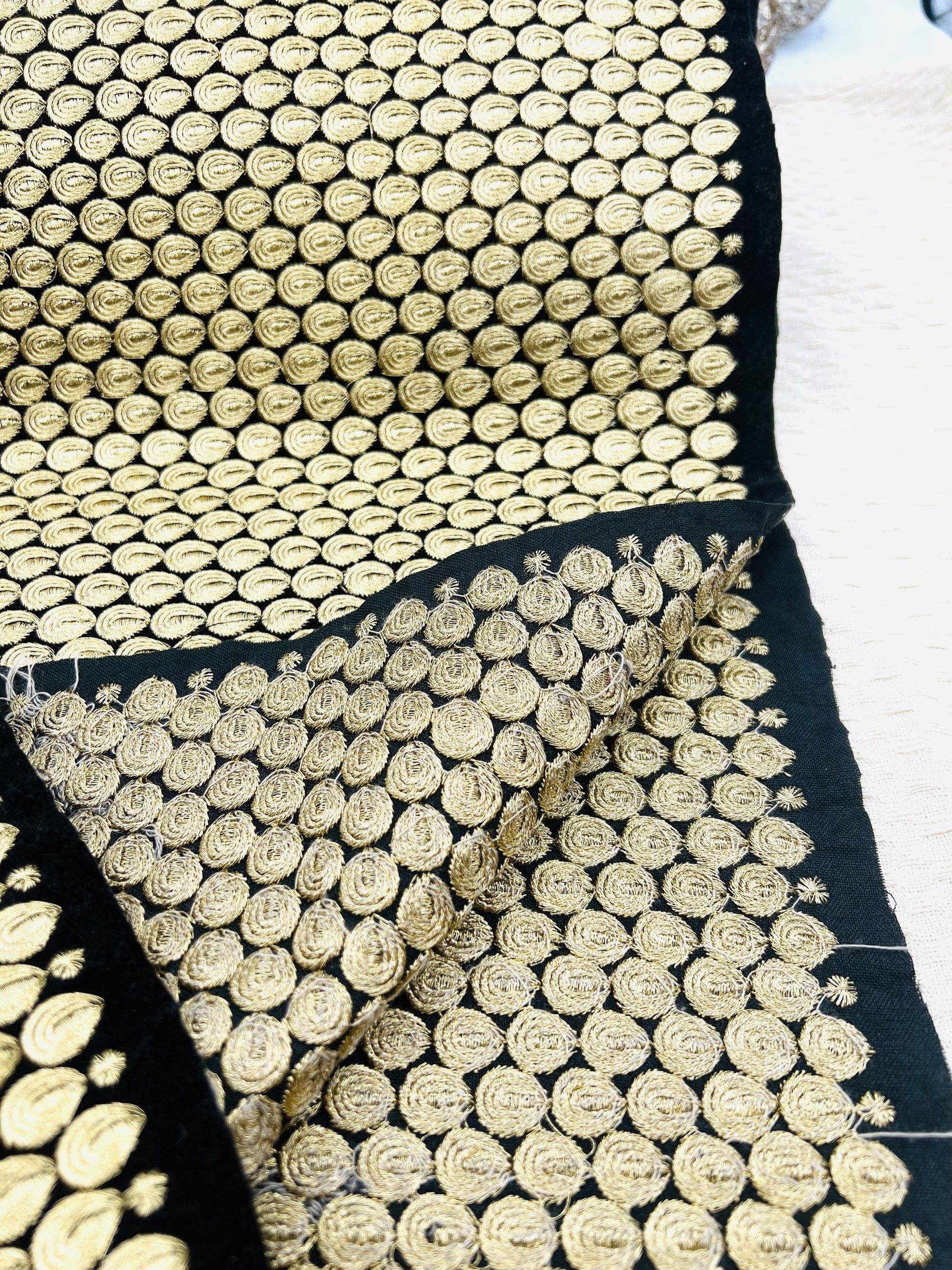 Ce galon extra large brodé doré sur fond noir est une pièce d’exception pour vos créations couture et décoration textile.